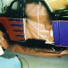 We masked it up and I began to spray colors and lay out the graphic design right in his garage. As it started to take shape, he began to smile more and more. The graphis design were carried into the jams and firewall then the body was clear coated. When dry, we moved it to a cleaner shop and painted the rest of the parts and recleared the body.